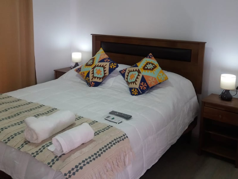 Acogedora habitación equipada con una cómoda cama de dos plazas, ideal para descansar y disfrutar de una estadía tranquila.
